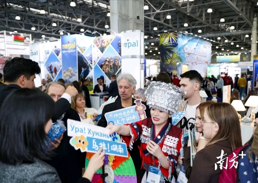 在文化和旅游部国际交流与配合局、中国驻莫斯科旅游服务处指点下,湖南省文化和旅游厅牵头组织省内5家重心文旅企业组团参展,以“三湘四水 相约湖南”为中枢主题,通过多维展示、专题推介、精确洽谈等表情,全面展现湖湘文旅的当然征象与东说念主文底蕴,定向深耕俄语客源市集,进一步进步湖南文旅的国际辨识度与影响力。