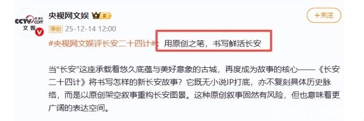 央视网仅用十一个字精确点评,直击文化内核,转眼拔高整部剧的艺术形态。