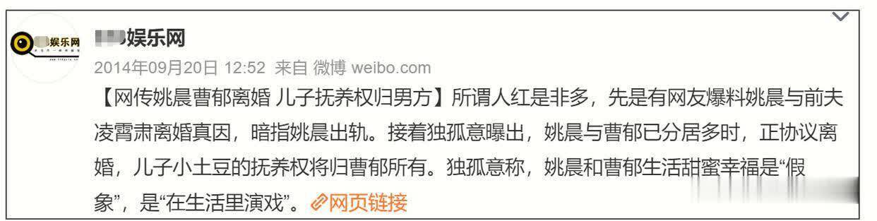 回到姚晨和曹郁离异这件事,其实早在2014年就有业内爆料,称两东谈主如故分居多时在契约离异,男儿侍奉权归男方通盘,还称男方出轨姚晨闺蜜。但这个说法显然站不住,毕竟姚晨在2016年还诞下了女儿。