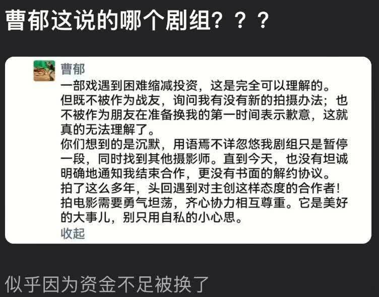曹郁天然长相平平,但才智过东谈主,曾横扫三大奖项。他的东谈主脉资源,也没少为和姚晨全部创立的影视公司出力。不外这些年曹郁资源下滑,2024年还在一又友圈吐槽和剧组的矛盾,显然在发展远不如从前。